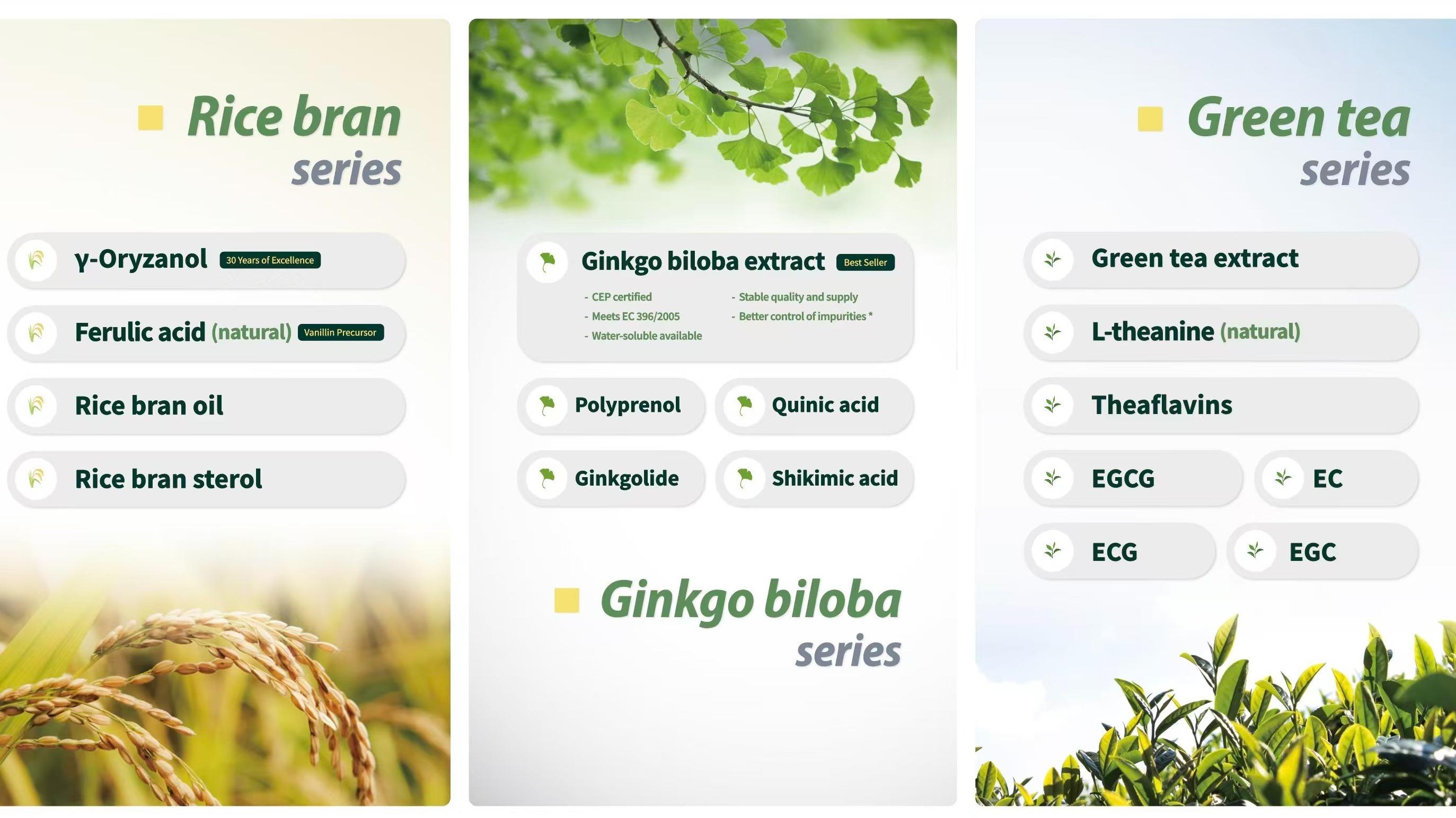 Founded in 1994, Delekang is dedicated to extracting natural ingredients from botanical materials. We focus on three key raw materials: rice bran, ginkgo biloba leaves, and green tea leaves. Our mission is to create greater value from limited resources. Through years of effort, the majority of our core products, including ginkgo biloba extract, gamma oryzanol, ferulic acid, and rice bran oil, are recognized for their superior quality within the industry. We take pride in offering these high-quality products at competitive prices. Our commitment to delivering top-notch quality at the most affordable prices sets us apart in the market.. Currently, Delekang operates three manufacturing facilities located in Taizhou (Zhejiang), Lianyungang (Jiangsu), and Yichang (Hubei).