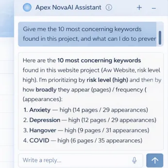 NovaAI is Apex’s interactive, AI-powered compliance assistant that helps you understand why certain language is considered risky, and how to possibly revise it. Ask questions, explore regulatory nuance, and get clearer guidance without slowing down your workflow.
