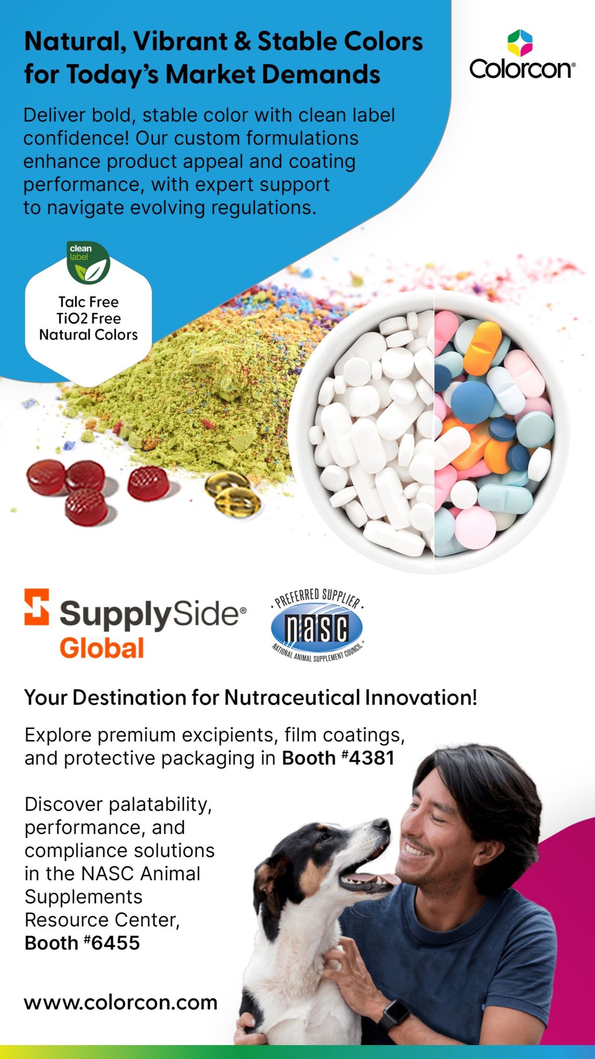 We encourage visitors to the Colorcon booth to explore new product development and more. The Colorcon team can provide insights into market trends, customer needs and challenges, and expedite the creation of innovative, high-quality products that appeal to consumers. We will showcase a comprehensive selection of offerings, including aesthetic and functional coatings, functional packaging solutions, and details about our exciting new partnerships.