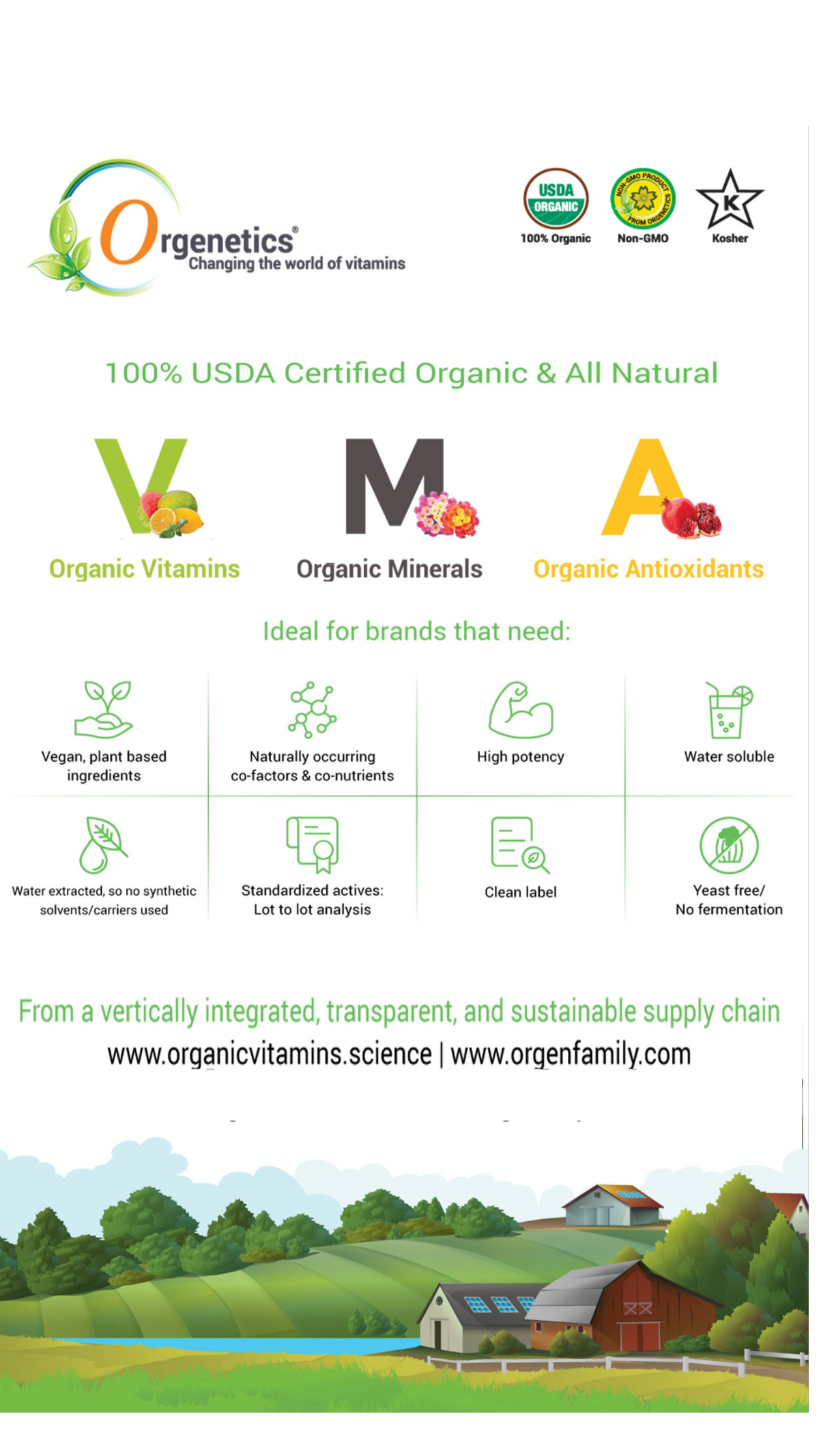 For over 17 years, Orgenetics remains dedicated to being your innovation partner in clean label nutrition. We are proud to be the pioneers of Organic & Plant Based Vitamins/Minerals.