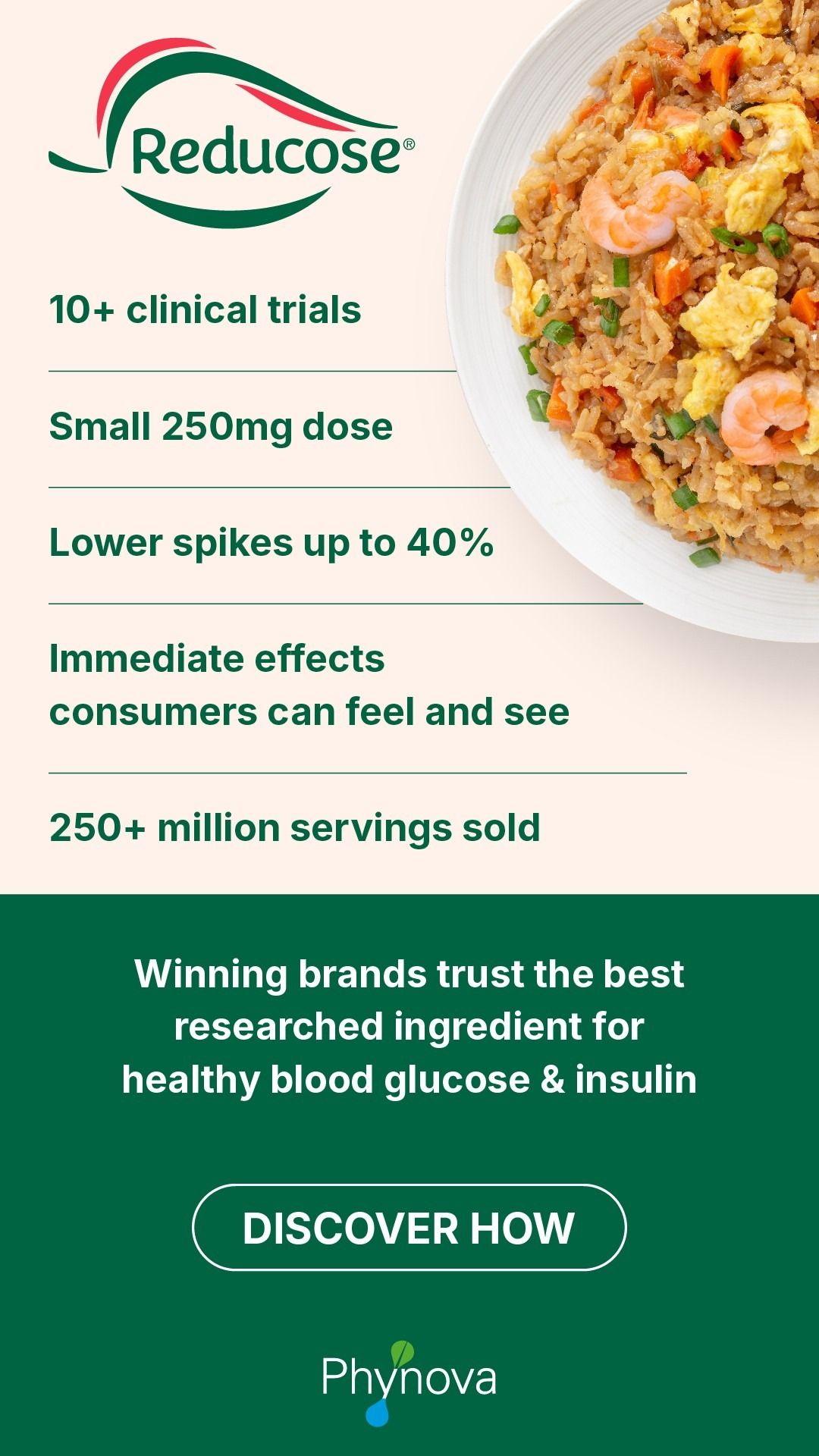 Backed by 11 published clinicals and 5 published pre-clinical studies, Reducose® is a patented mulberry leaf extract that works with the first serving by lowering post-prandial glucose and insulin spikes up to 42% when taken with carbs. Consumers can see it working in real-time (using a CGM) as they feel the benefits of better metabolic health like steadier energy, improved sleep and mood. Its small serving size (250mg) is portable and helpful in a world where 76% of our food choices involve carbohydrates that cause spikes. Available in 35 countries, it’s fully traceable from farm to shelf and non-GMO verified.