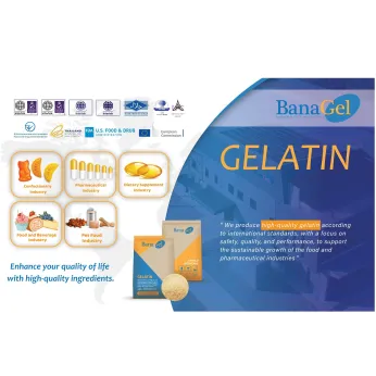 Banagel produces food (edible) and pharmaceutical grade gelatin derived from bovine skin & bone and also fish skin & scale. We can wide range of specifications that will suit every specific application such as gelatin capsule, softgel, tablet coating, gummy, marshmallow, candy, yogurt, pantball and etc. We can customize gelatin physical items such as particle size from 8 Mesh to 60 Mesh, Jelly Strength from 80 to 300 Bloom, Viscosity from 2.0 to 5.0 mPa·s and etc.