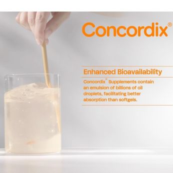 Concordix is the first supplement designed for your body by mirroring the structure of food for optimal nutrient absorption. This is evidenced in clinical research showing upwards of 44.9% greater uptake than softgels. Concordix Supplements can accommodate high payloads of oil-soluble nutrients and combine both oil- and water-soluble nutrients in the same formulation. Each dose is individually and hygienically sealed within a blister pack to prevent oxidation and maintain quality and potency throughout the product's shelf life. Concordix Supplements are formulated with natural flavors and no sugar, offering a delicious and enjoyable supplementation experience.